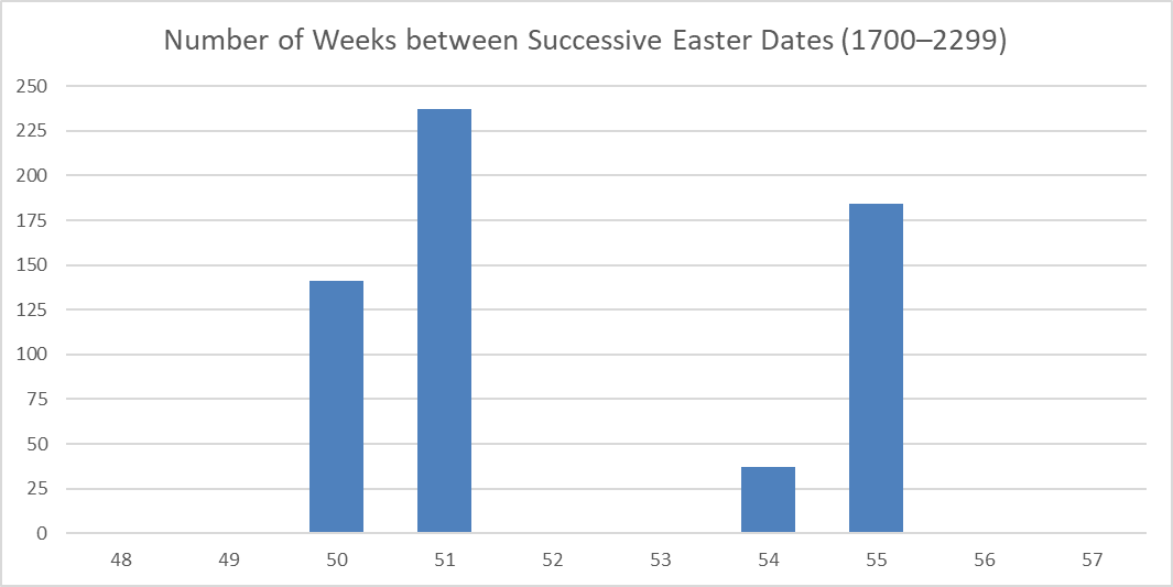 Distance between Easter dates, in weeks